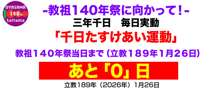 埼玉につながる皆さま はげましあって、おやさまにお喜びいただける三年千日を通…