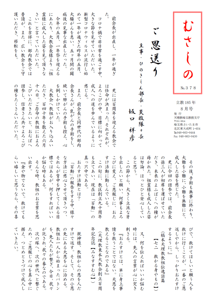 むさしの 立教185年7月号 アップしました